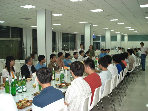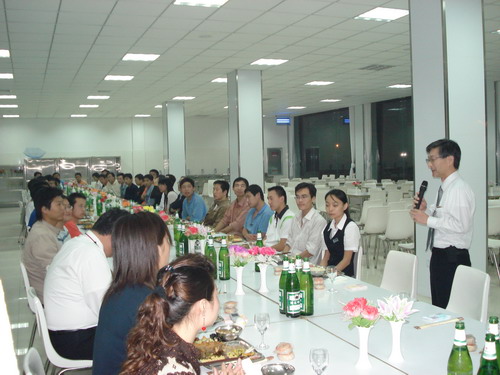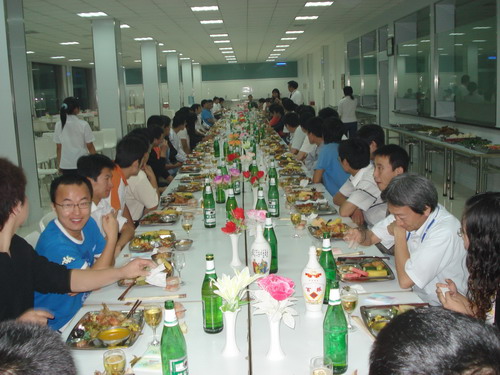 晚宴在輕快的音樂聲中舉行,總經(jīng)理孫龍平因公務(wù)無法前來,專門打電話表達(dá)了對員工的節(jié)日問候。公司董事長井上先生、常務(wù)副總鈴木先生先后致辭,表達(dá)了對員工節(jié)日的祝賀,同時(shí)談到了八月十五這一天,在日本也有全家人賞月的傳統(tǒng),故鄉(xiāng)的明月是所有游子魂?duì)繅衾@的情。自助式晚宴進(jìn)行得自由而輕松,員工之間頻頻舉杯,共敘友誼,并無多愁善感;人力資源部姜部長帶頭向員工一一祝酒,對員工的鼓勵(lì)溢于言表,整個(gè)餐廳觥籌交錯(cuò),其樂融融。