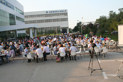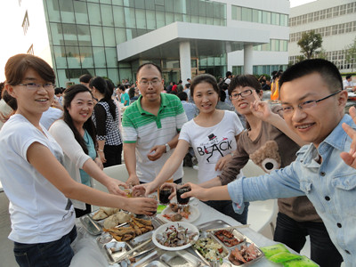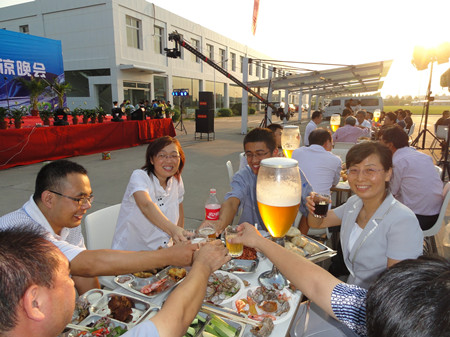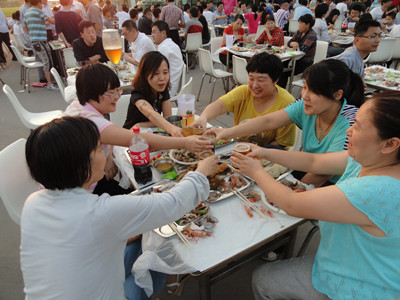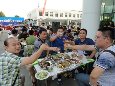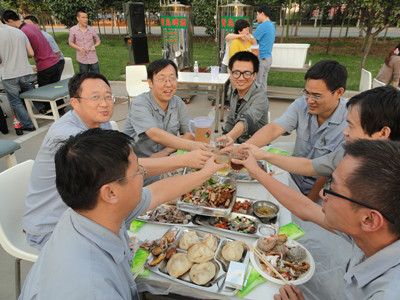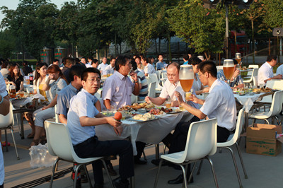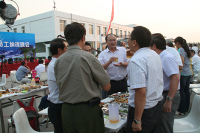 17:30分, “第四屆員工納涼晚會(huì)”正式開始。首先是員工聚餐。近400名員工,伴著歡快的樂曲聲,推杯換盞,大快朵頤。公司總經(jīng)理志賀進(jìn)、常務(wù)副總經(jīng)理王正軍等公司領(lǐng)導(dǎo)走入員工中,與員工們親切交談,敬酒祝愿,整個(gè)會(huì)場(chǎng)洋溢著一張張歡樂的笑臉。