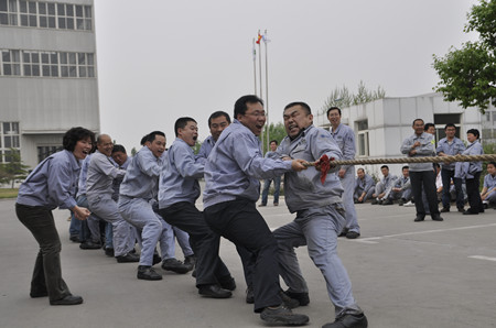 新聞中心為慶祝五?一勞動節(jié),公司工會舉辦“第五屆員工拔河比賽”。4月30日下午,在辦公樓前200多名員工參加的拔河比賽正緊張進行。參賽隊伍共有八支男隊、四支女隊。經(jīng)過緊張的角逐,焊接物流隊以絕對的優(yōu)勢力拔頭籌獲得男子冠軍,生產(chǎn)裝配隊獲得男子亞軍;生產(chǎn)部女隊獲女子冠軍。